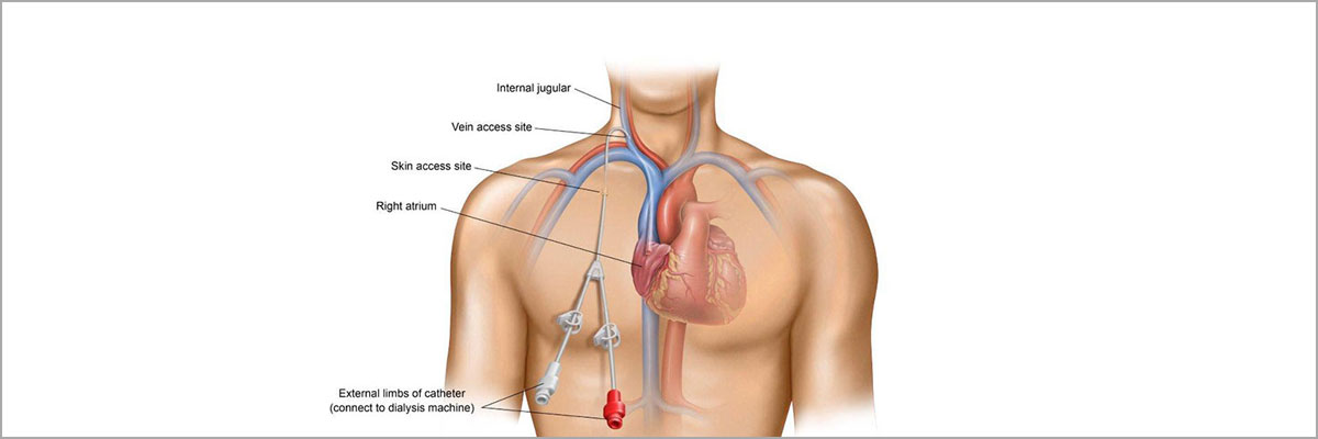 Dialysis is the lifeline of Chronic Kidney diseases [CKD] / Renal failure patients. AV Fistual is the most common dialysis access method. If it fails or can’t be done then Permcath placement is 2nd preferred method of long term Hemodialysis. A flexible tube which is inserted into vein having 2 hollow bores is called as Permcath. Generally Permcath is inserted in internal jugular vein and very rarely in femoral vein in the groin region. One hollow bore carries blood from body to dialysis machine whereas the other bore carries blood from dialysis machine to body. There’s a cuff which holds catheter in place protecting from infections which also acts like a barrier.